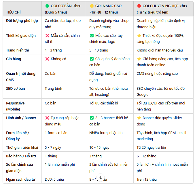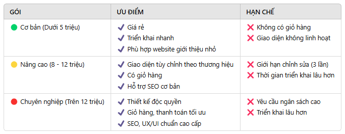 📦 PHÂN TÍCH CHI TIẾT TỪNG GÓI WEBSITE